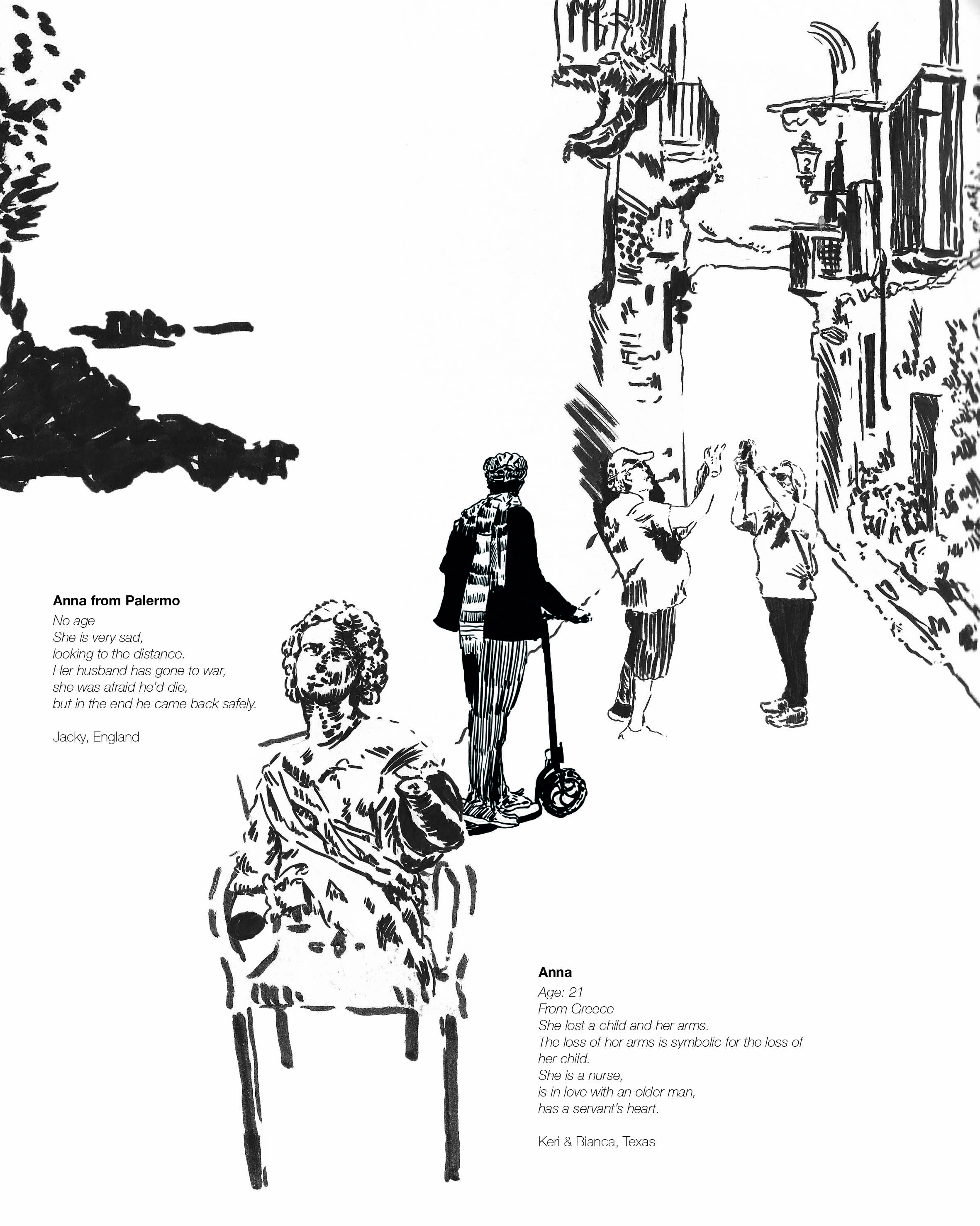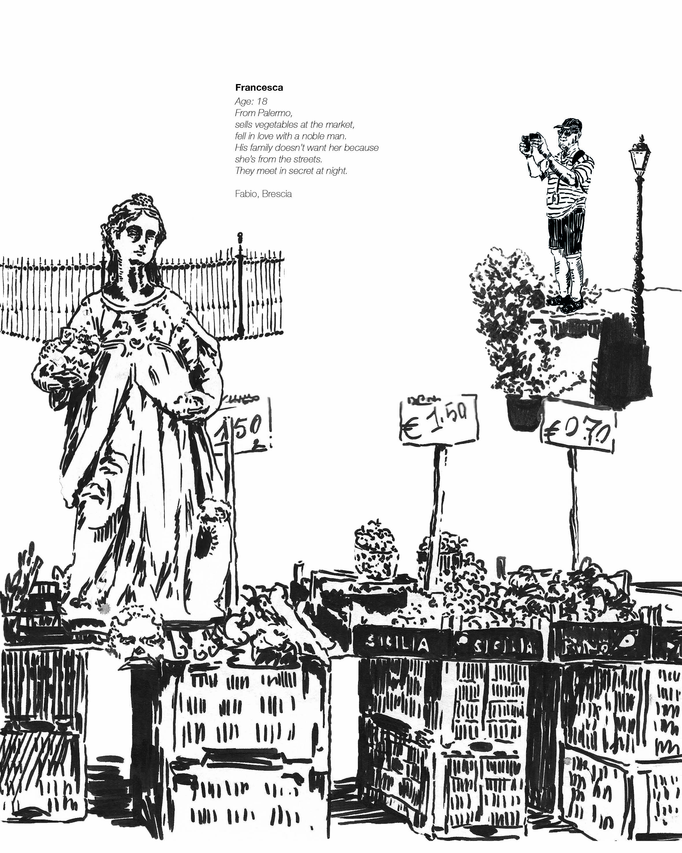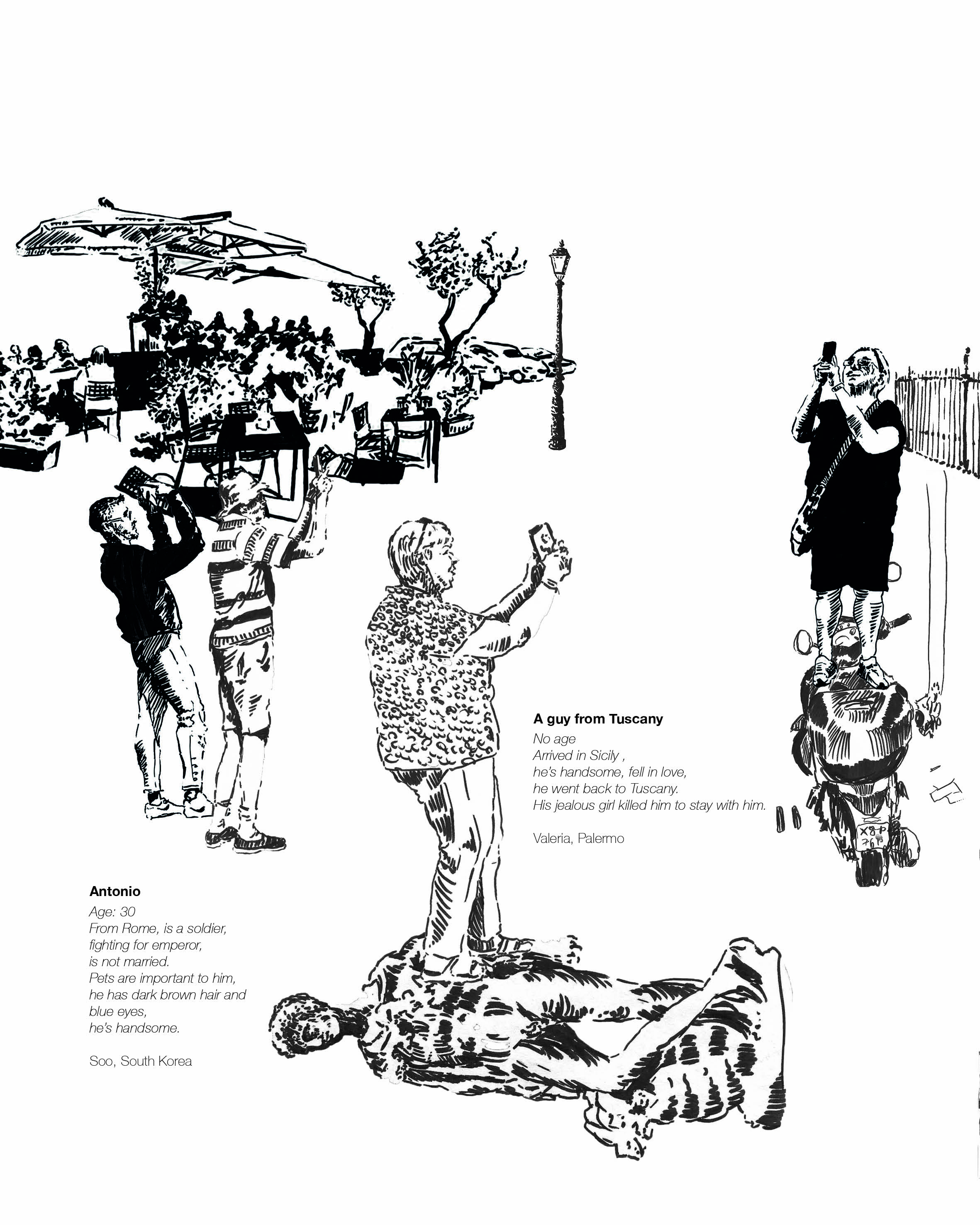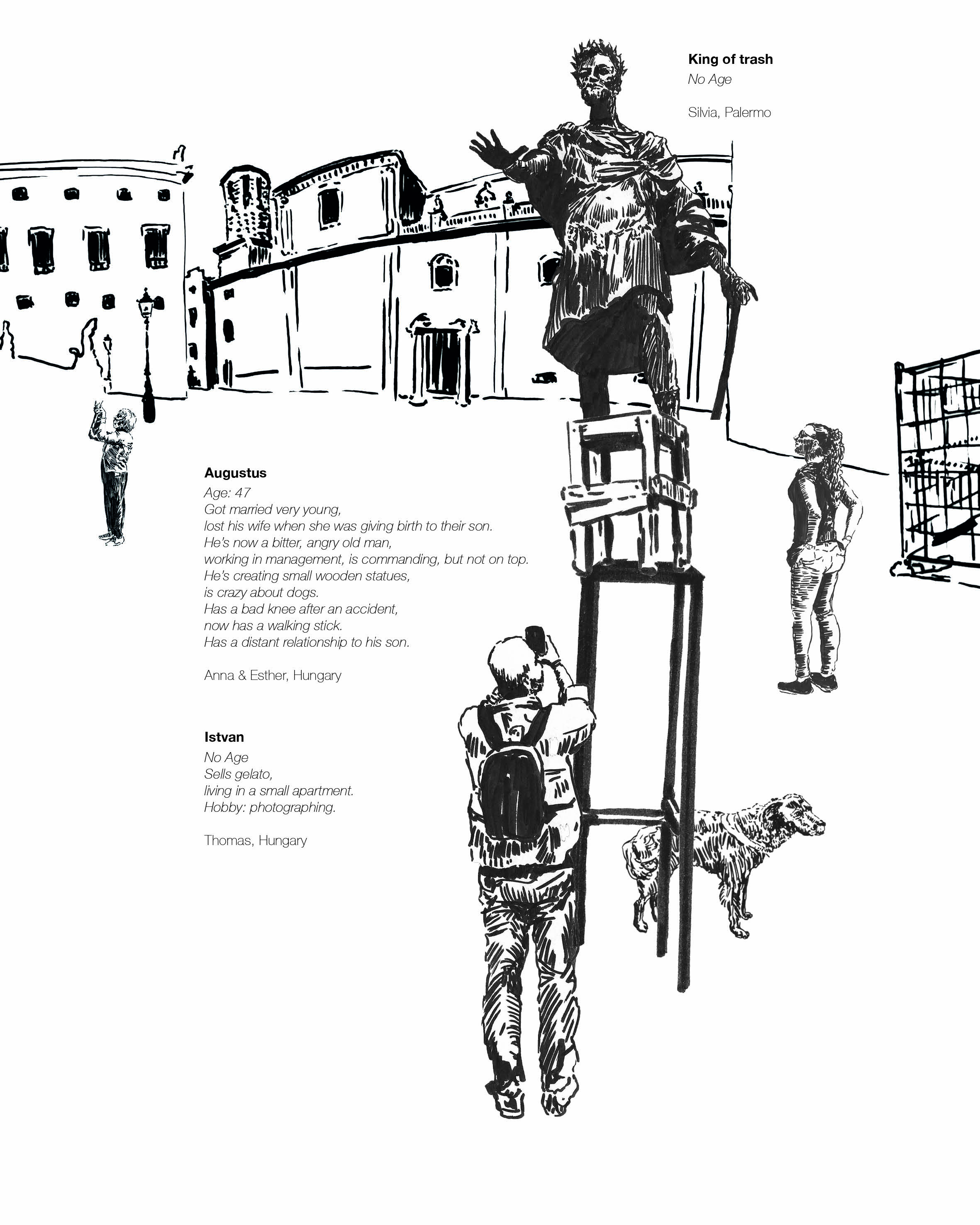 Ein Leporello inspiriert von Statuen und dem Tourismus Palermos.